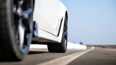 Le nouveau dessin spectaculaire de l’aileron « flottant » contribue à la génération de la force d’appui et a été incliné vers l’arrière pour supprimer la résistance à l’air. Soutenu par de nouveaux supports en aluminium moulé, l’aileron arrière est plus bas mais plus large que sur le modèle précédent, ce qui accentue la nouvelle ligne de toit élégante et la posture plus large de la voiture.